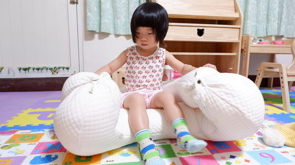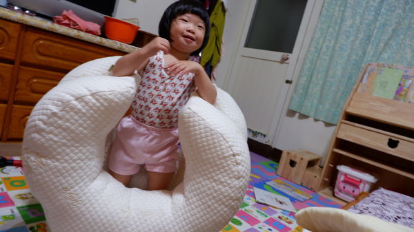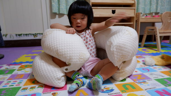 而她小小的腦袋裡還可以自己創造出好多哺乳枕遊戲,
