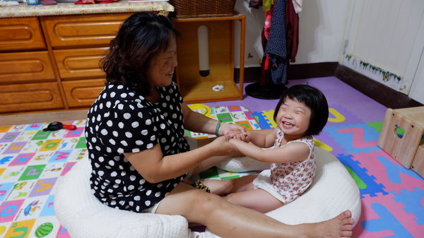 小公主正在跟阿嬤唱~我們倆划著船兒采紅菱呀采紅菱~哈哈哈