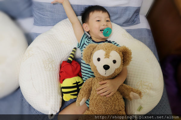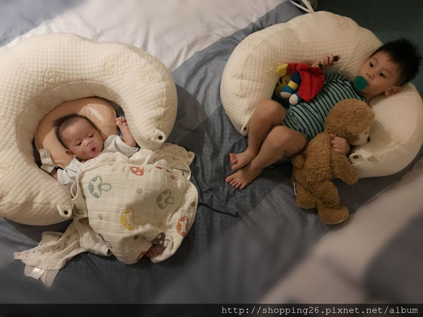 現在晚上睡覺太太就是孩子們一人一個,柯比超級喜歡被護嬰枕圍繞著有一種在自己的小世界裡睡覺的感覺,每次媽媽一關燈、然後放上晚安音樂,我們家柯比就會乖乖就寢,整個很配合.(#原來老嬰兒還是一樣很需要安全感啊)