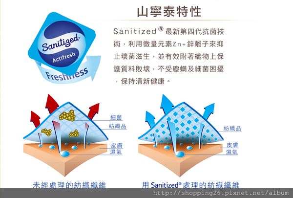 GreySa格蕾莎哺乳護嬰枕更使用瑞士第一品牌Sanitized®山寧泰最新的第四代防菌技術來抑止壞菌滋生,並有效附著織物上保護質料敗壞,不受塵蟎及細菌困擾,讓寶寶可以遠離過敏原.