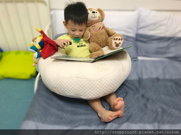 話說孩子可愛之處就是你有我也要有,所以柯比現在也很愛自己霸佔一個然後靠在上面看書,常常一靠上去就會浮誇地說:「媽媽這個真的好舒服喔!」(#偷偷學太太跟木可先生說的台詞)