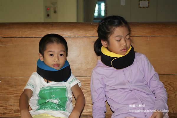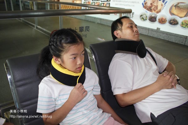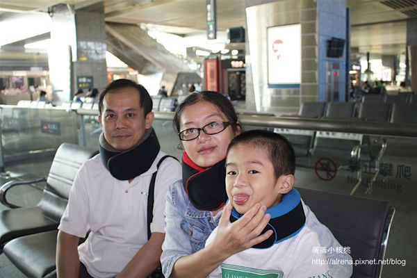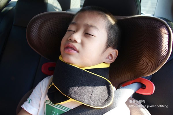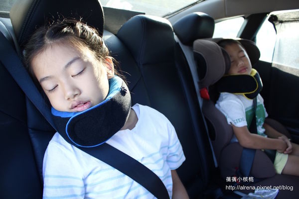因為太早起床,孩子們的哈欠連連,艾琳在出發前往高鐵站的自家車中,就要求孩子們自行戴上GreySa格蕾莎-全家福旅行頸枕。