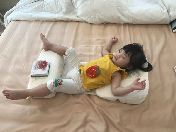 右邊傾斜18度當枕頭、左邊維持90度當掛跨腳墊