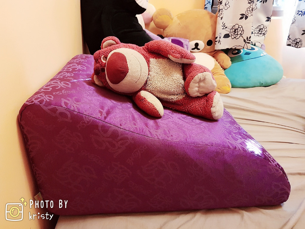 抬腿枕有很多種顏色,其實我覺得最美的是粉紅色~但我考量耐髒問題,所以選深色調的神秘魅紫。