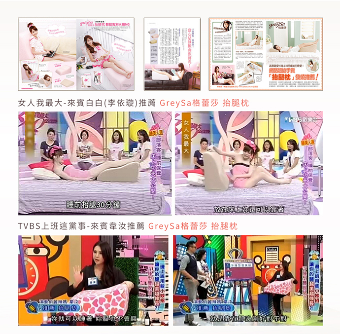 文章連結:各大雜誌、節目推薦GreySa格蕾莎抬腿枕+輕鬆枕