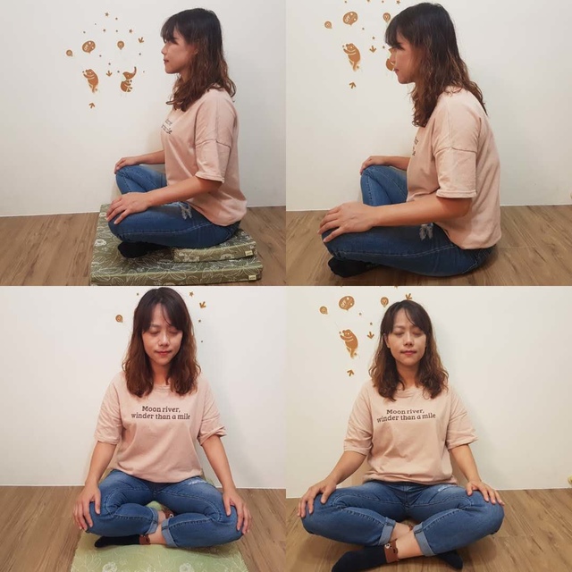 當盤腿打坐時,身體的姿態自然而然的就會有放鬆的感覺