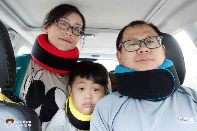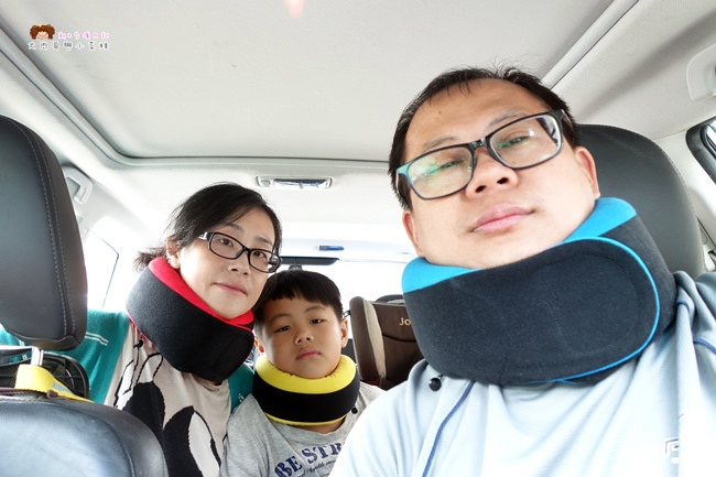 除了妹妹未滿120公分不適用外,我們家一人準備一個全家福旅行頸枕