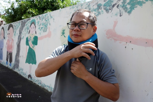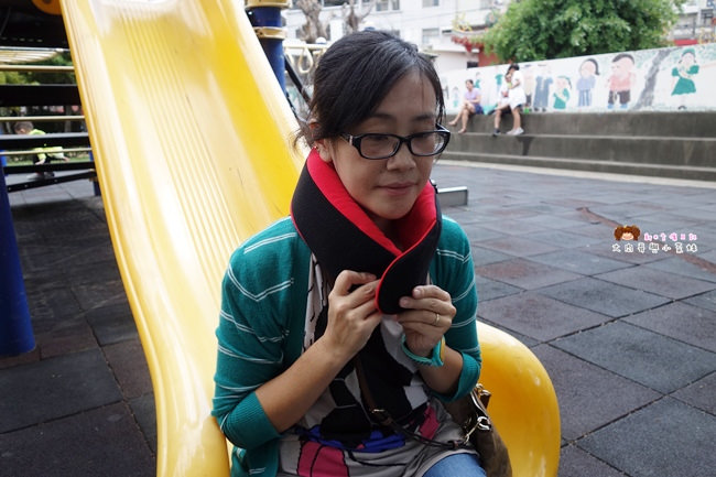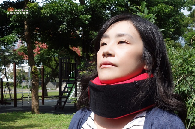 實際圍上全家福旅行頸枕試試,頸枕的包覆性真的很不錯!
