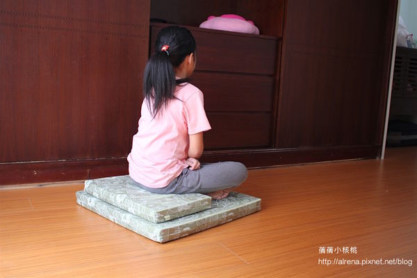 之前的靜坐都是直接要孩子坐在地上,直到孩子抗議屁股痛和腿麻的情況發生,艾琳才不得不正視這個問題。
