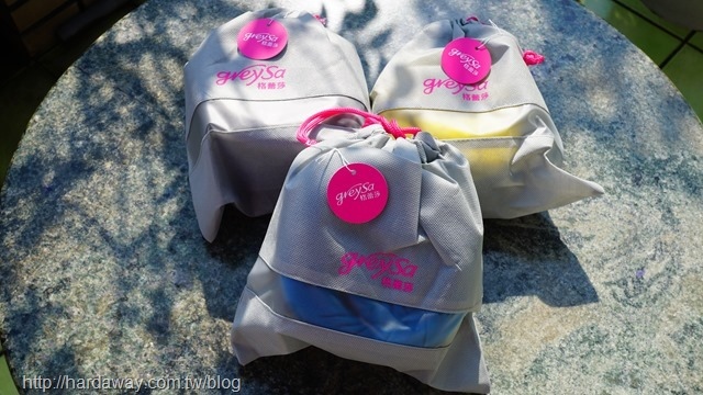 這次幫自己與朋友入手兩大一小的GreySa格蕾莎全家福旅行頸枕,而每個頸枕都有隨附束口袋,可以方便收納與攜帶。