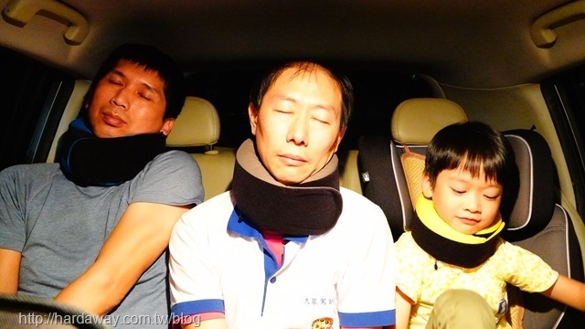 車行途中,睡意逐漸浮現,坐在後座的我們,全部戴著GreySa格蕾莎全家福旅行頸枕補眠啦!
