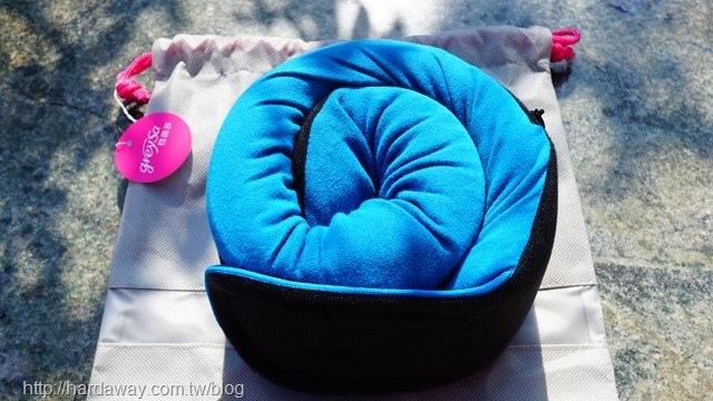 實際使用GreySa格蕾莎全家福旅行頸枕最直接感受的,就是可以把它捲起來裝在隨附的束口袋,外出攜帶時擺放在背包裡不會佔據很多空間。