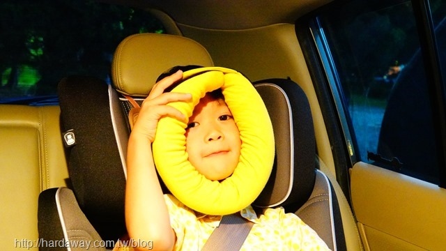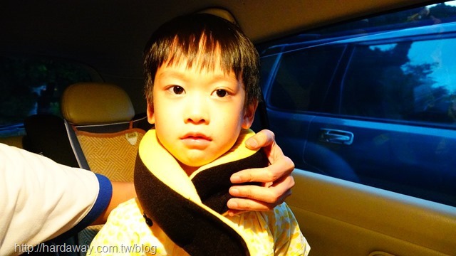 幾天前,跟朋友七早八早出門玩,上車時先幫小朋友戴上小的GreySa格蕾莎全家福旅行頸枕,讓他繼續睡覺。