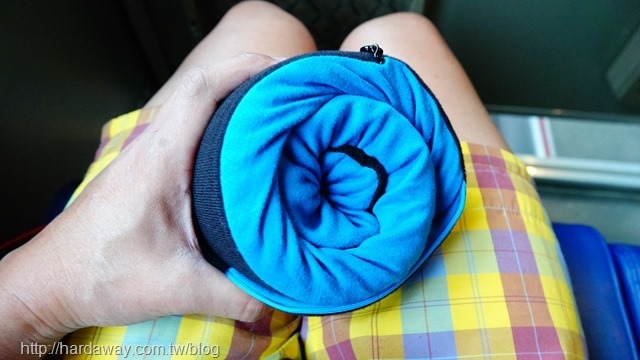 拿這趟出門小旅行來說,因為帶的東西比較多,我就把這個自己使用的GreySa格蕾莎全家福旅行頸枕捲得更小一些,同樣OK沒有問題。