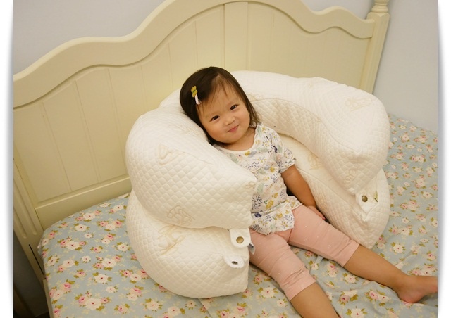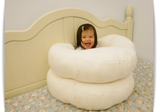 Ingrid小妞很愛這個哺乳護嬰枕,常常躲在裡面當城堡那樣玩耍。