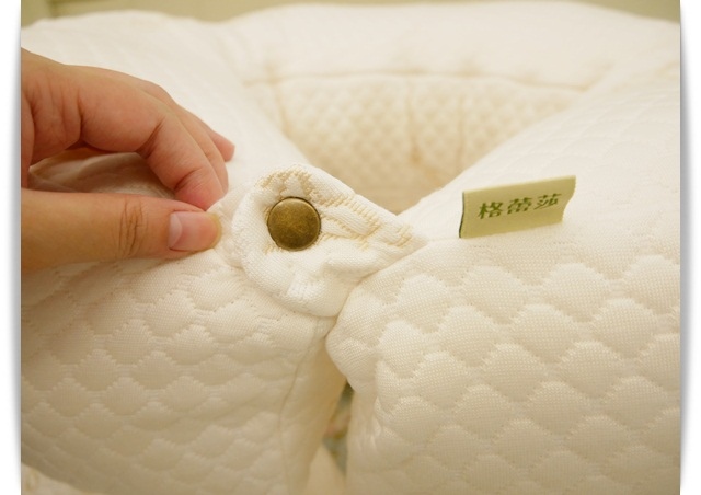 還有很特別的獨家設計鈕扣布套,可以將兩顆枕頭扣在一起使用。
