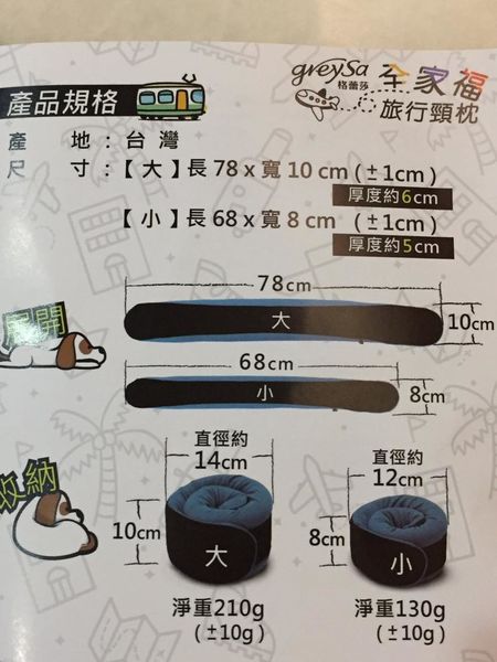 格蕾莎全家福旅行頸枕可依個人需求調整適當尺寸