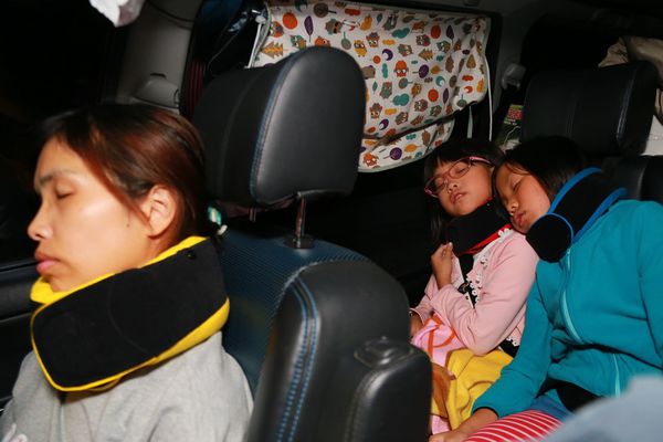 哈!某次晃去較遠的地方,戴著頸枕,我也睡著啦~~