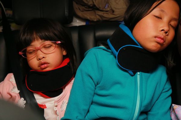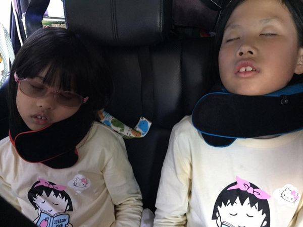 讓他們在路上圍著這頸枕,睡覺比較好睡,不會晃來晃去~