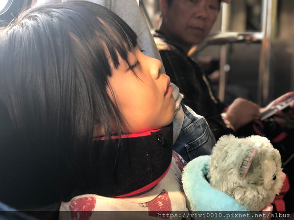 因為通常旅行都會選擇離家2-3小時車程的地方~在車上空間有限,睡著的時候總是東倒西歪
