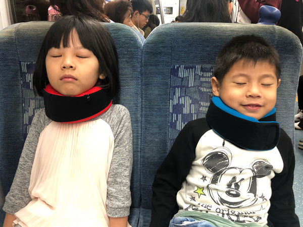 旅行頸枕非常符合圓圓跟品品的脖子長度,360度的包覆頸部