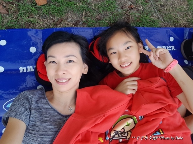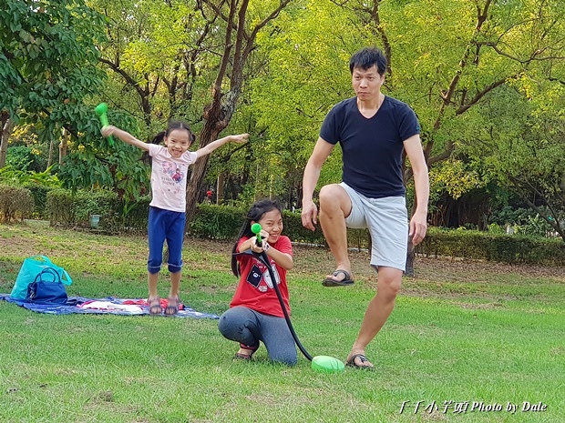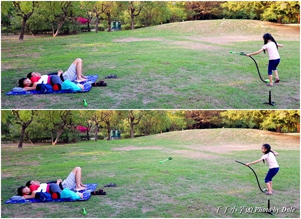 瀅瀅拿著火箭對著躺在野餐墊上的我們~我們變成人肉靶心囉!!
