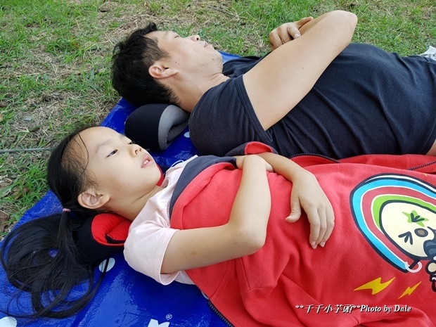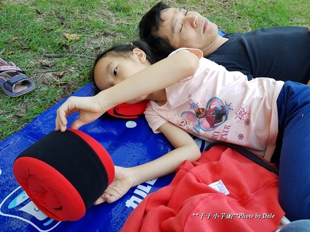 瀅瀅還在一旁開心玩著火箭,千千拔己經躺平準備夢周公了~噗~