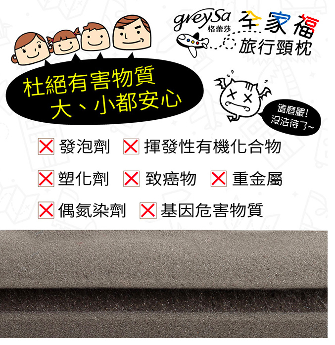 格蕾莎全家福旅行頸枕在材質的選用上面就很強大!!