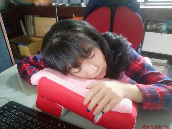 來試試不同睡法,午睡枕攤平睡沒有塌陷情形的冏況發生