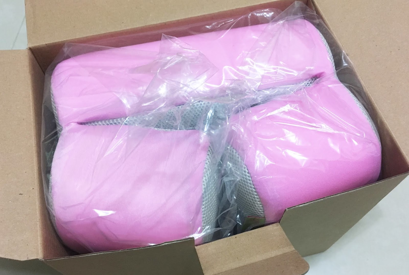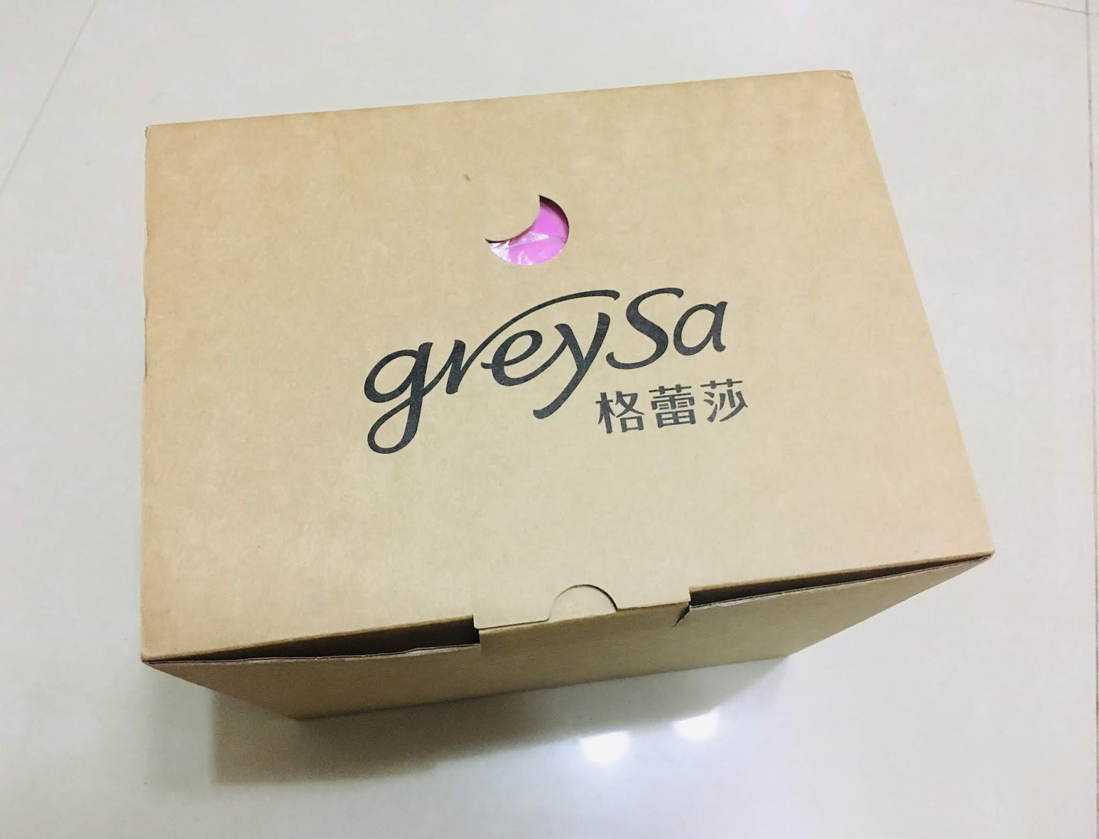 「GreySa格蕾莎」的「折疊式午睡枕」外盒上方有個小小的月亮形狀開口,可以看得到我選定的顏色「嫩粉紅」,簡單有質感的外盒也適合拿來送禮。