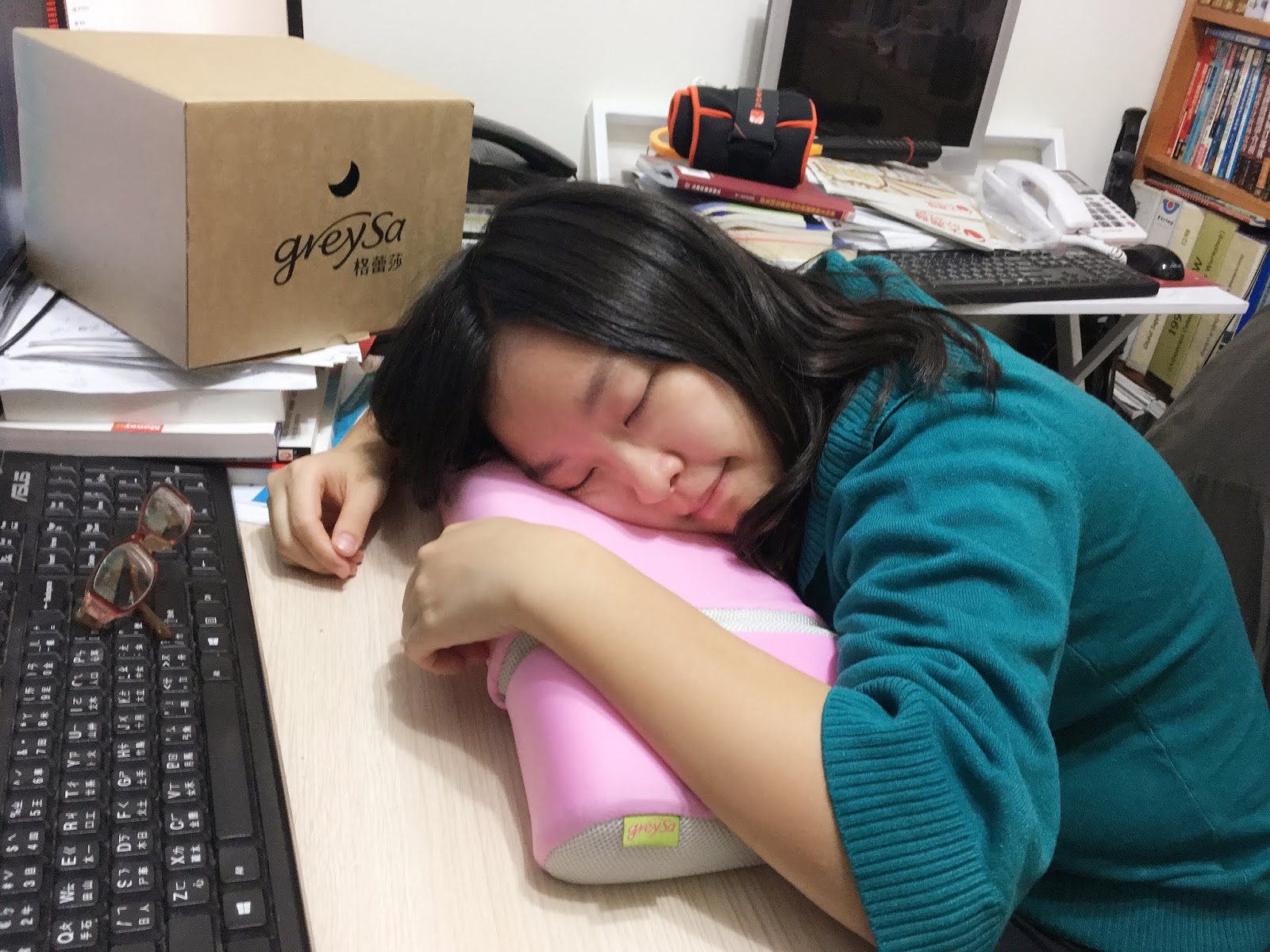 試用「GreySa格蕾莎」的「折疊式午睡枕(嫩粉紅)」午睡時,臉部接觸到柔軟的表層,記憶棉可根據睡姿塑形,不會在臉上產生壓痕,有支撐力的底層可以維持在固定高度,真的像官網說的「像躺在媽媽大腿上一樣」舒服啊!