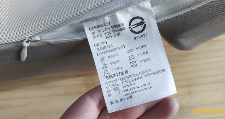 另一面是用透氣布料,可以避免熱氣悶在枕心裡面,整體的布料都是通過歐盟Oeko-Tex 100檢驗的