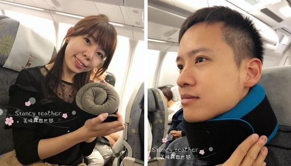 上飛機之後我馬上拿出格蕾莎全家福旅行頸枕