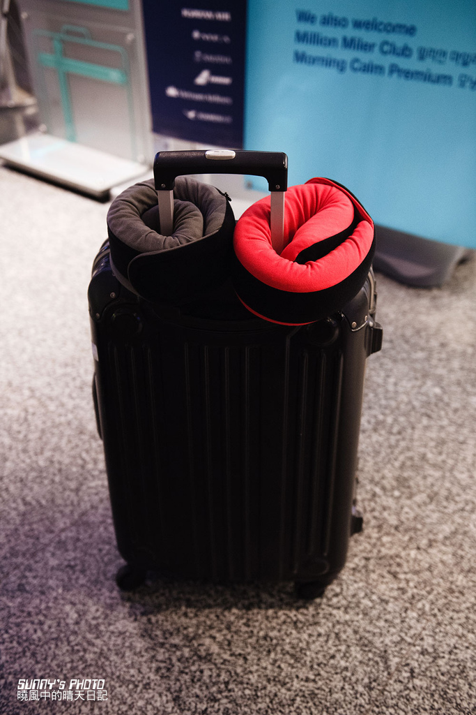 (之後如果是大行李移動中用不到它時,其實也可以把它拉展開塞在行李箱另一角,堪稱是頸枕界的變形蟲啦 XD)