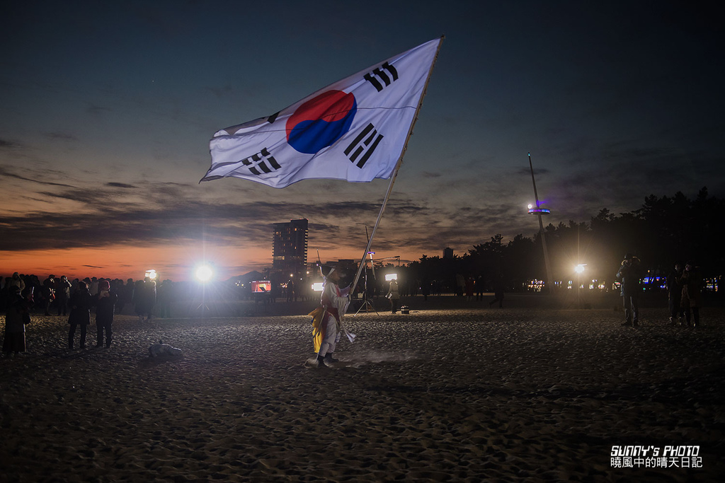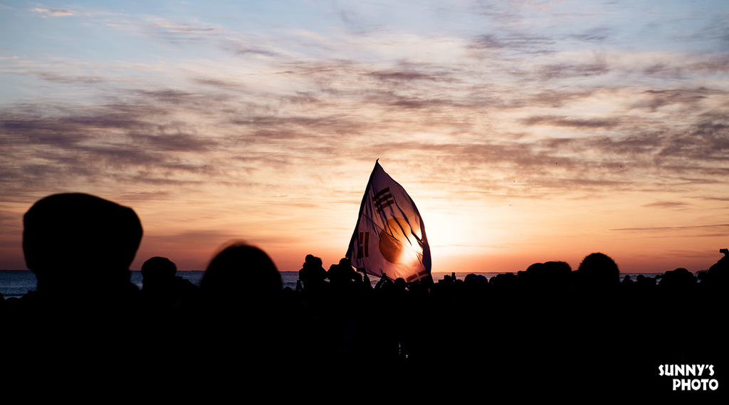 終於日出了~這是和剛才那一面是不同的國旗,令人感覺韓國人真的熱血呀XD