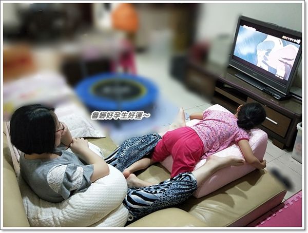 看他居然很享受的坐躺在上面…看電視ㄟ….