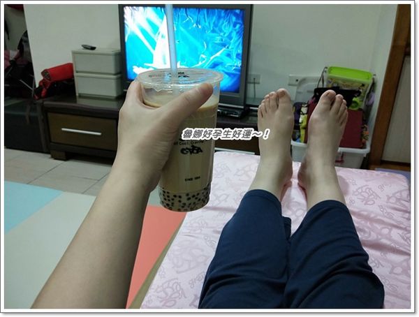 順便來杯珍奶發奶,邊看電視邊抬腿放鬆~開心啊!