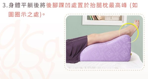 後腳踝一定要放到抬腿枕的底部,才是正確的方法