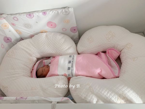 瞧~貝兒入住月子中心時,月子中心提供一般的月亮枕,