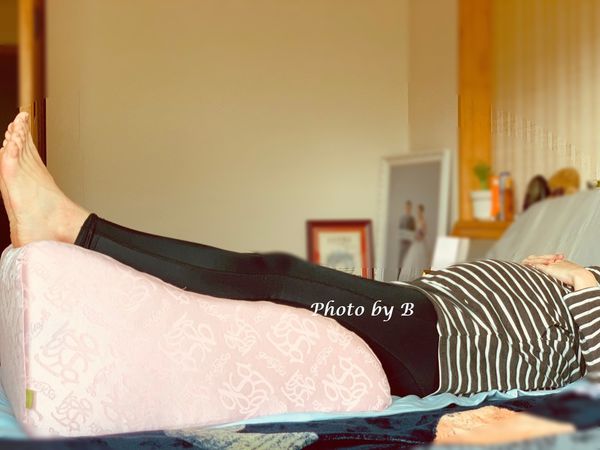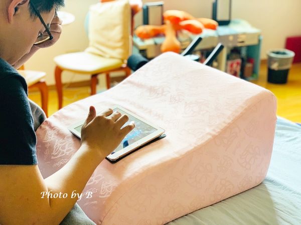 趴著用 貝兒常常會趴在床上看書,划手機,有了【GreySa格蕾莎抬腿枕】就不會壓XD