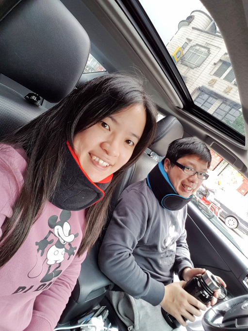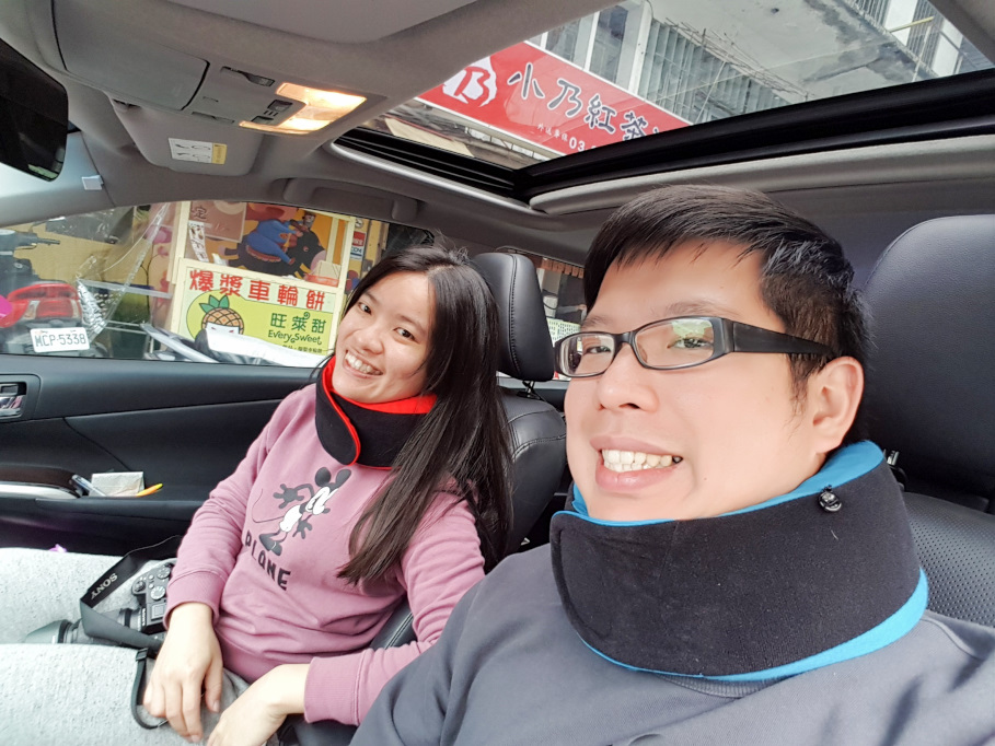 周末只要有空,我們都會開車來個一日小旅行,一聽到之前撲空的清水地熱廣場重新開放,說走就走!!桃園到宜蘭三星鄉大約要兩個小時,而且還是不塞車的狀態,都比搭飛機到沖繩還遠了XDDD. 出國搭飛機都會記得用頸枕,搭車當然也要,我們很愛穿情侶裝,當然頸枕也要來個同款不同色的囉!!