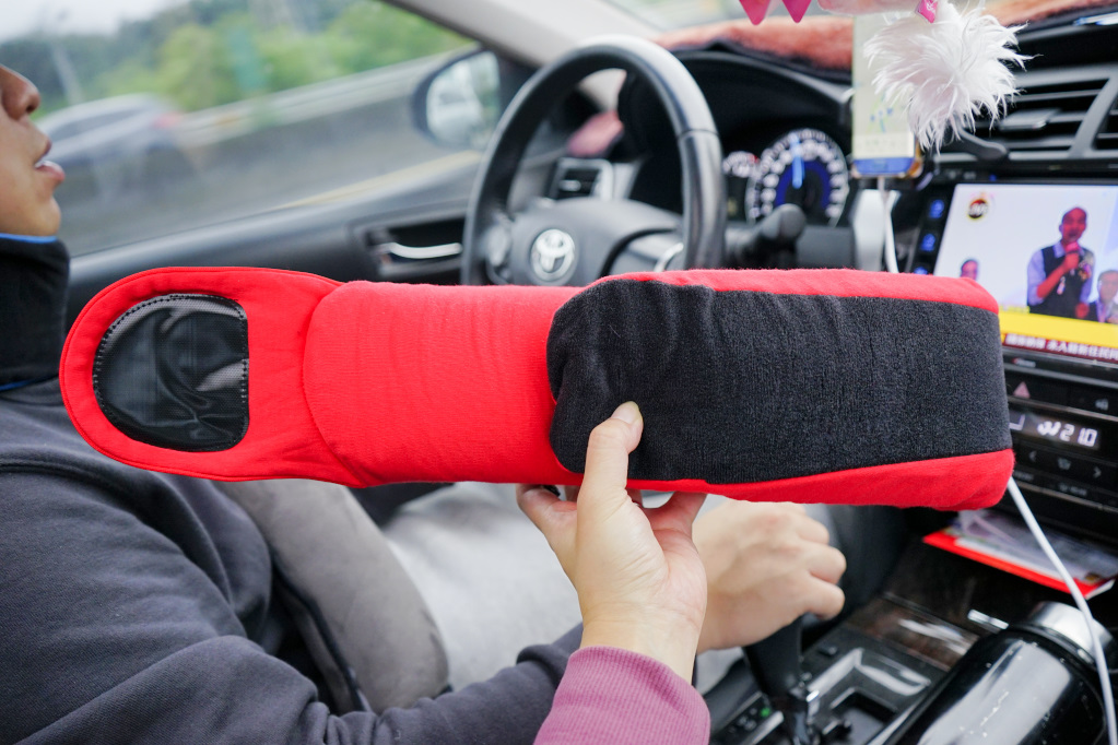 以前使用的頸枕,前面脖子都有一個空,下巴根本沒東西支撐,老是點頭點到驚醒,不然就睡一睡滑掉,或是脖子被往前推反而頭靠不到椅背,總之舒適性其實沒有想像中來的好>”<. 所以開車時與其用了不舒服,寧可讓它懸空,但身為副駕車程久了脖子真的會很痠又睡不好阿!!