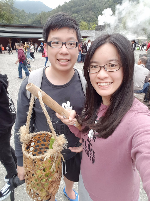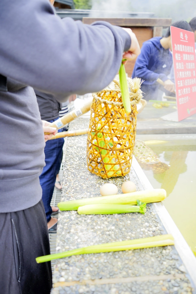 只是單純體驗有去的溫泉煮蛋,吃巧不吃飽,現場都可以直接買食材,租個竹籃。