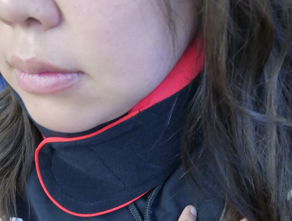 再加上有一個魔鬼粘的設計,魔鬼粘的好處是可以自由調整頸圍的鬆緊,這點很不錯~