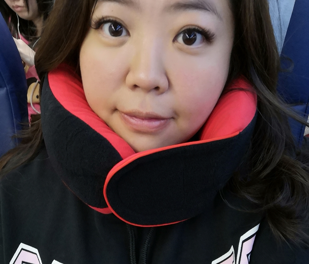 終於願意把旅行枕戴上,本來還想跟我該說魔鬼粘不舒服
