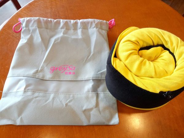 這款GreySa全家福 旅型頸枕是針對常常出差的民眾所設計,一共有四個顏色,黃/紅/藍/灰,我自己選擇了閃亮的黃色!