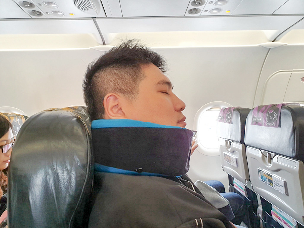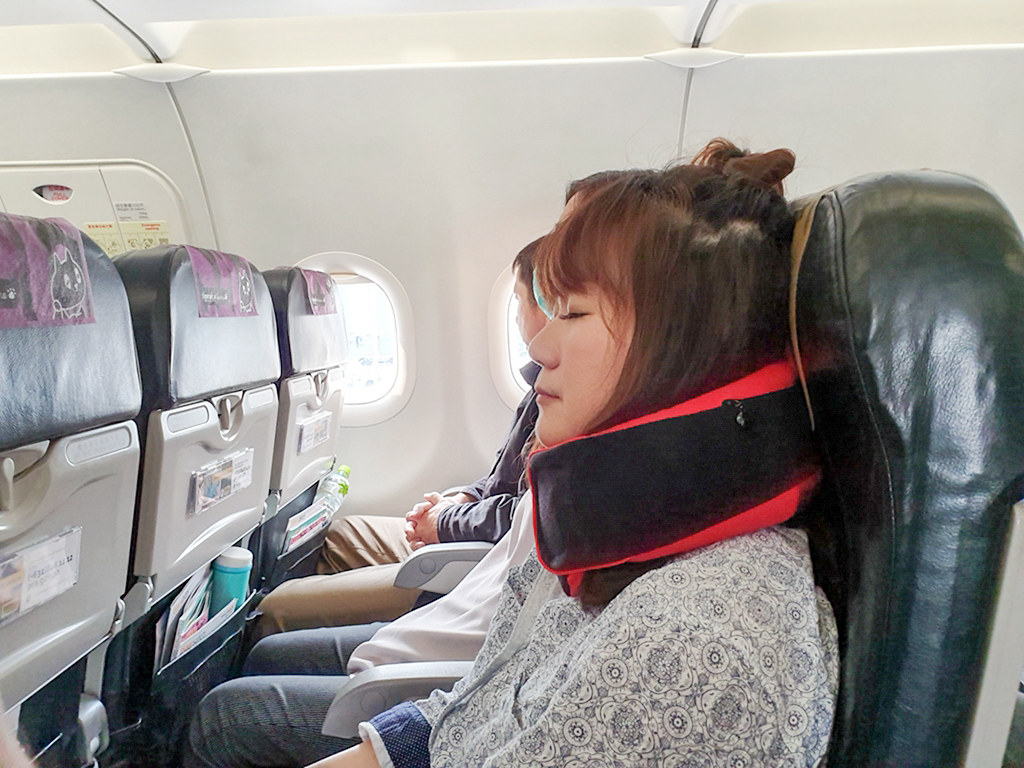360度環繞包覆頸部撐托下巴,睡翻了也不會搖頭晃腦,頭靠得到椅背,頸枕厚度適中填補椅背與頸部的間隙,一路上睡得好安穩