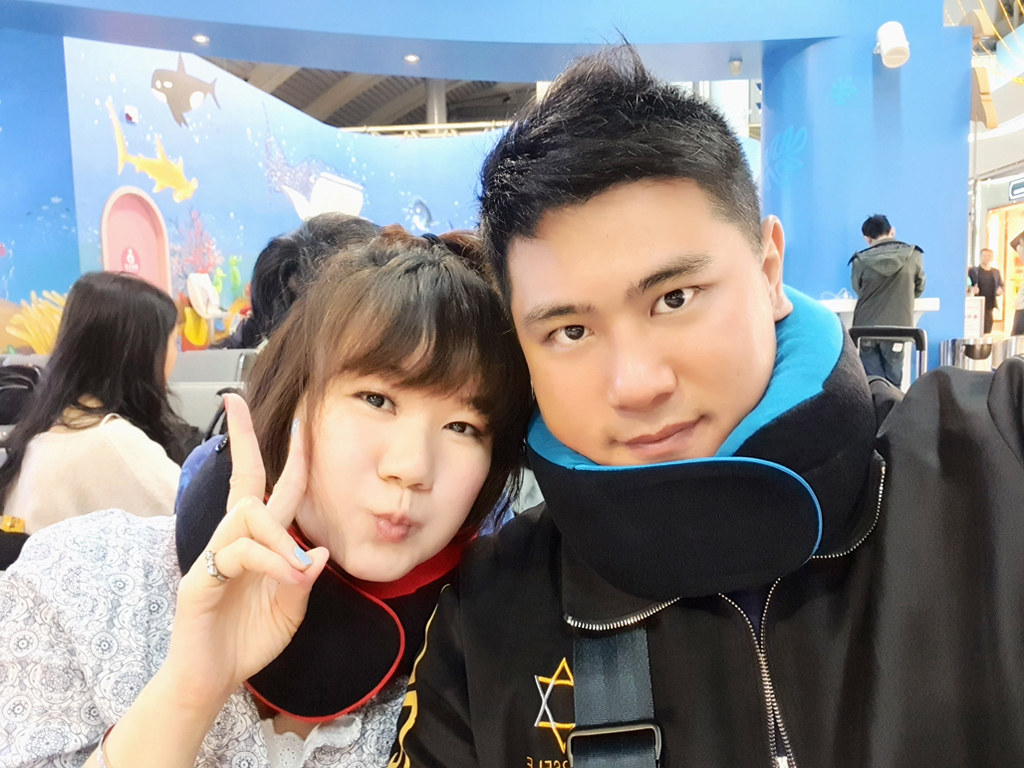 在飛機上冷氣很冷,剛好保護脖子不吹風,好溫暖啊!