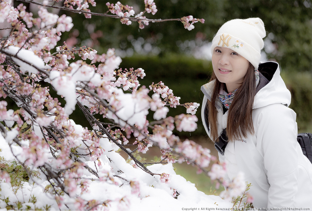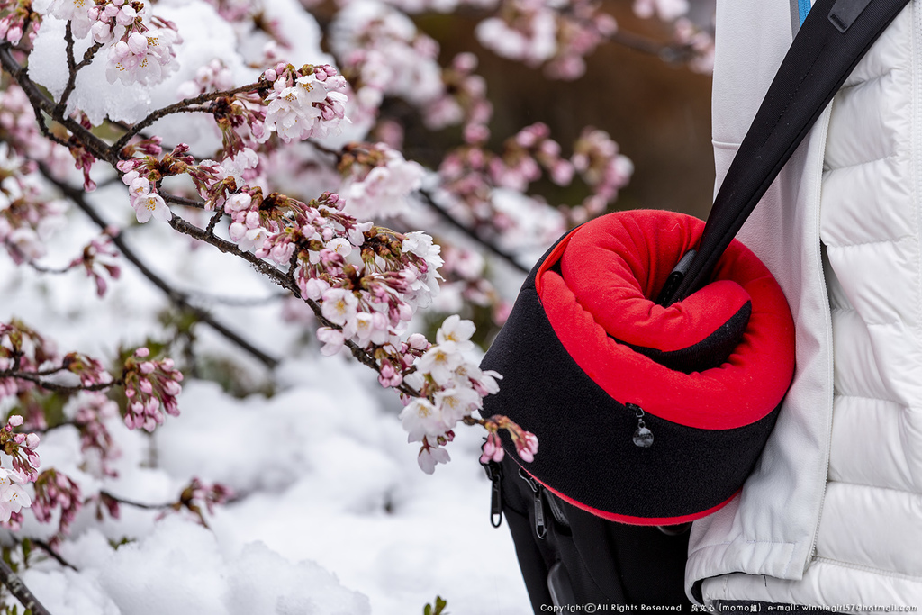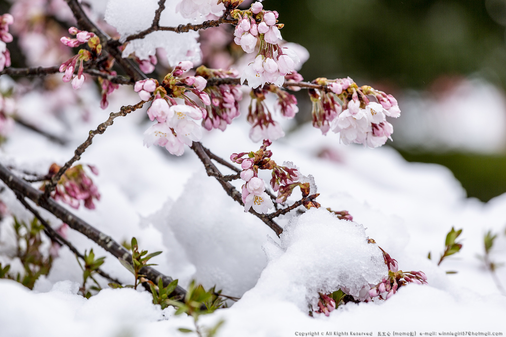 因此會看到櫻花上還有殘雪及融化水珠的相映襯,這畫面真的好美...