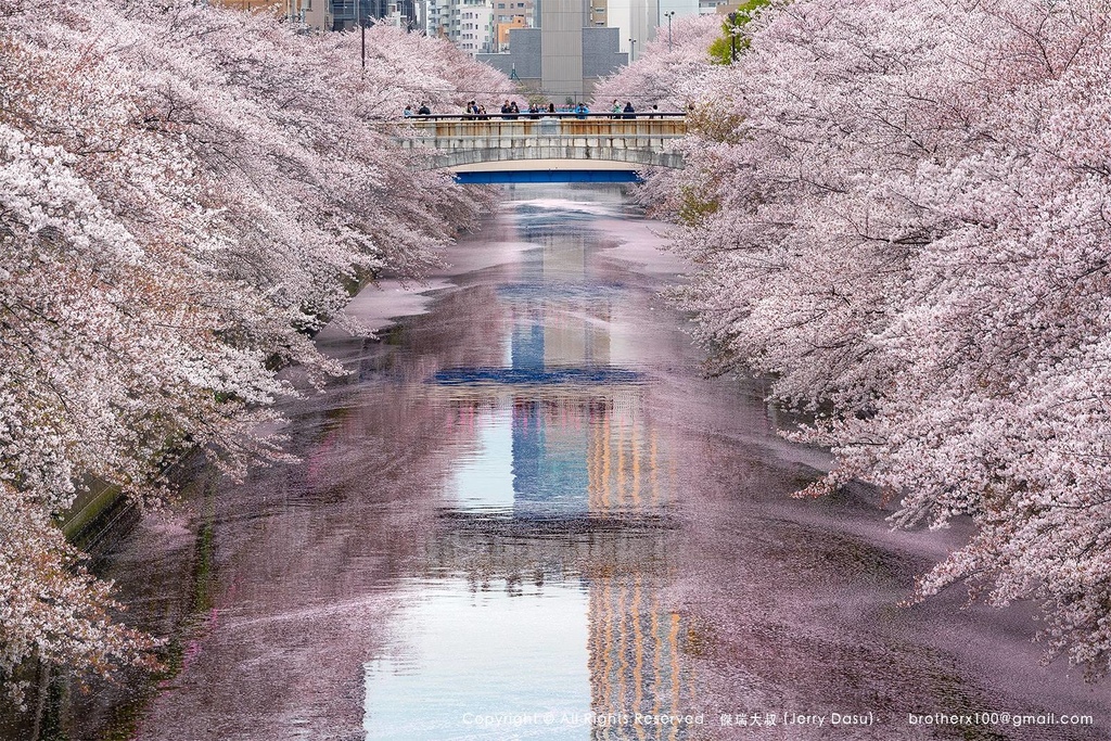 這一次到日本也帶著它爬爬走,這是在日本東京目黑川北端,4/8拍攝到開很久的櫻花,兩旁的櫻花相映成趣,久看不膩啊~
